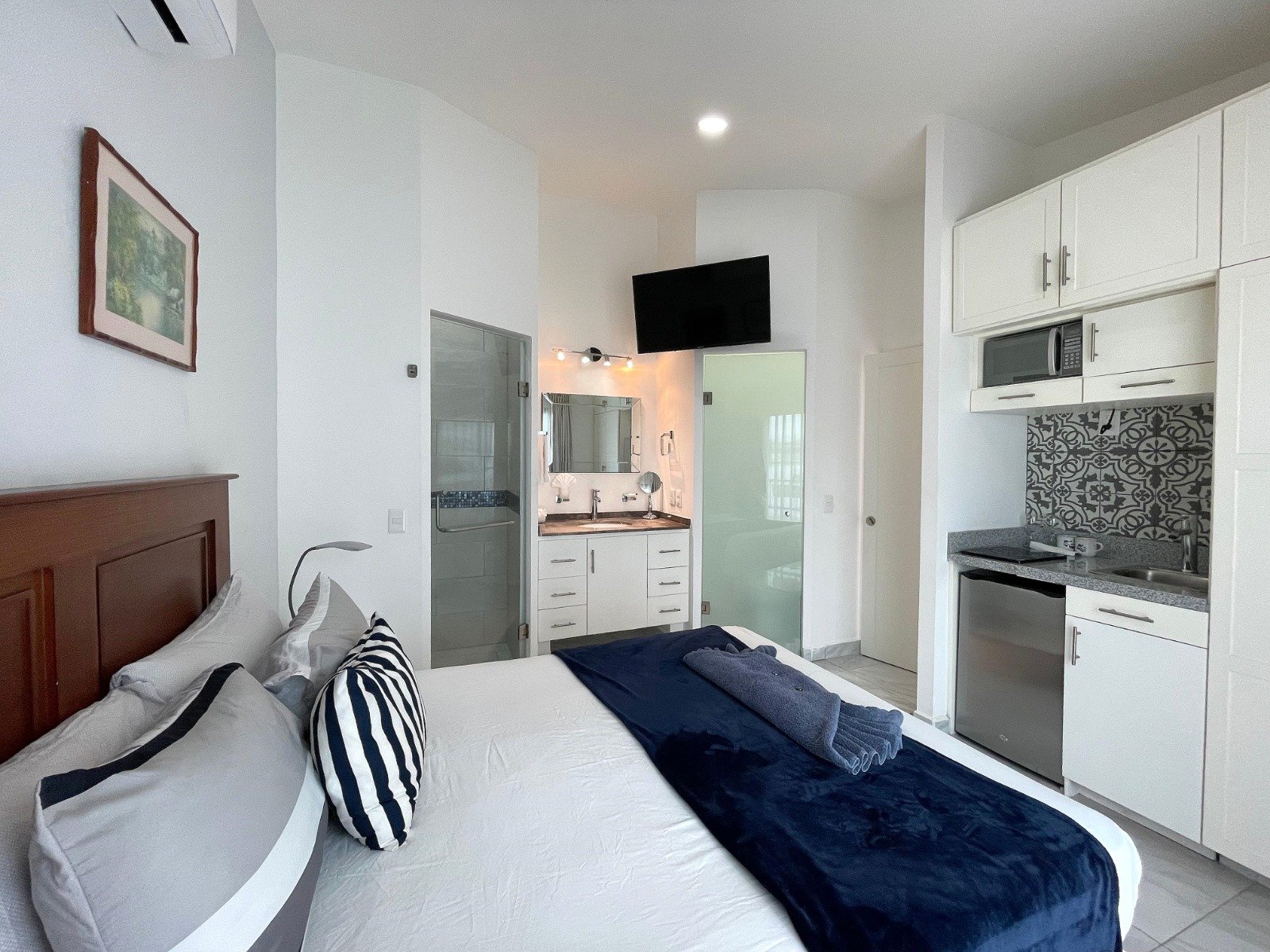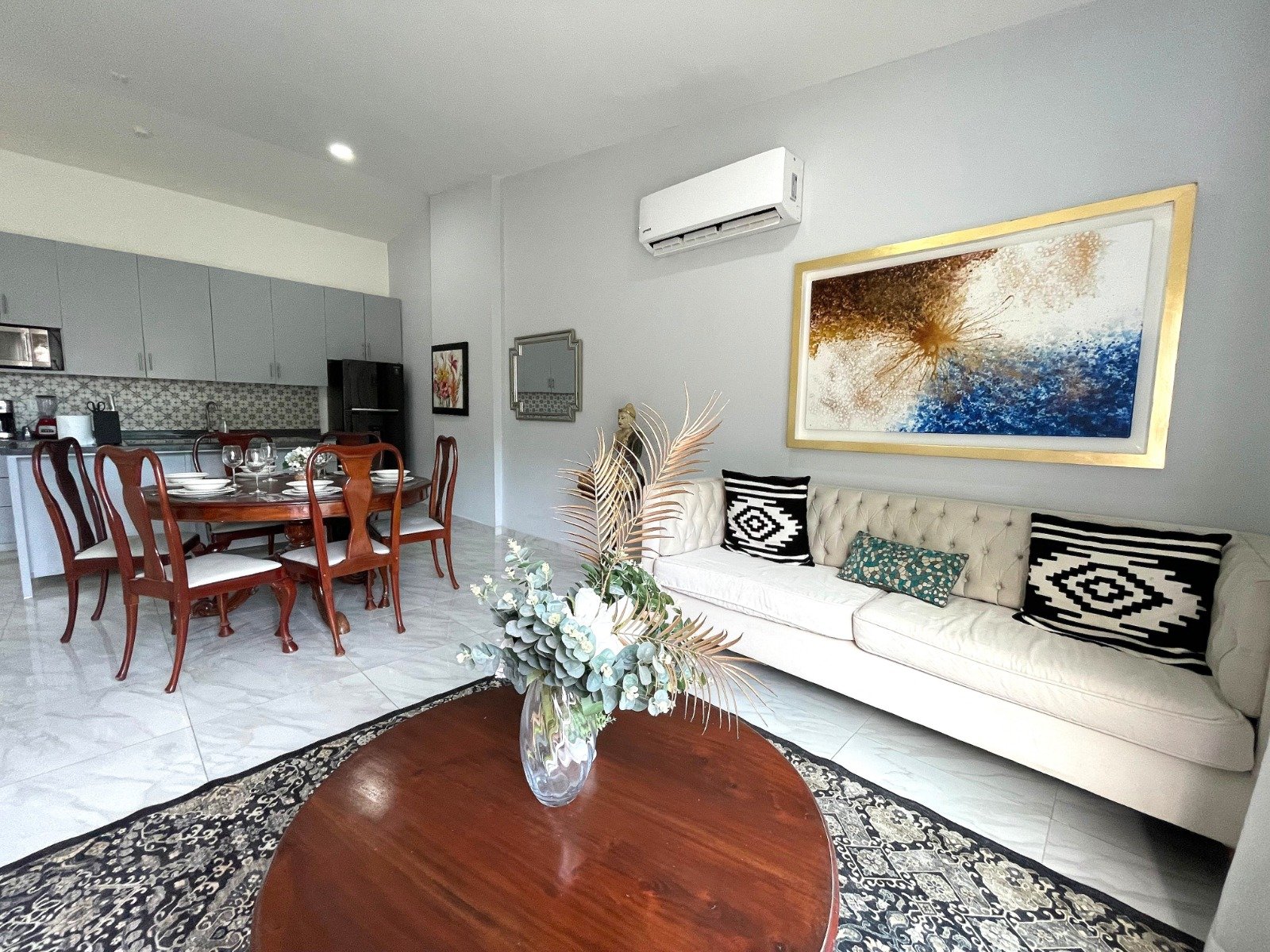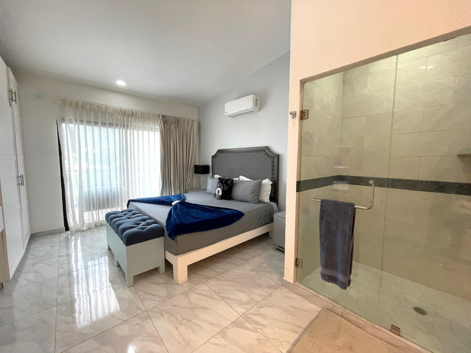 The apartment features a fully equipped kitchen with a breakfast bar, offering all essential appliances for extended stays. With three private bathrooms, three closets, air conditioning, and luxury amenities, this penthouse delivers true resort-style living in an exceptional setting.