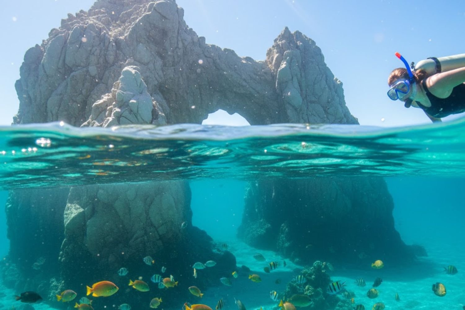 Experience Cabo’s iconic rock arch by transparent boat with stunning ocean views.